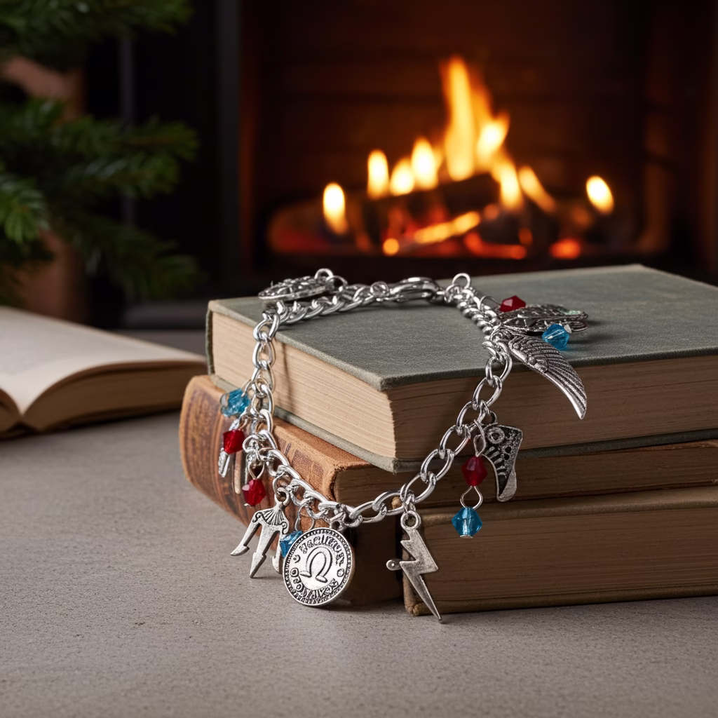 Bransoletka Percy Jackson z zawieszkami inspirowanymi mitologią. Gotowy prezent dla fana książek Ricka Riordana i świata Camp Half-Blood.