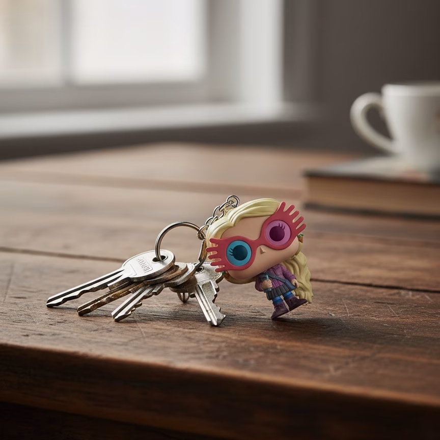Brelok Luna Lovegood to miniaturowy totem najbardziej urokliwej dziwaczki Hogwartu, która nauczyła nas, że normalność jest przereklamowana, że wiara w niewidzialne nie jest szaleństwem, a mądrością, i że czasem najlepszym sposobem na życie jest taniec w swoim własnym rytmie, nawet jeśli nikt inny nie słyszy muzyki. Wyobraź sobie, że każdego ranka, chwytając za klucze, spotykasz te wielkie, marzycielskie oczy Luny, które mówią: “Rzeczy, które zgubiliśmy, mają sposób na powracanie do nas w końcu, choć nie zawsze tak, jak się spodziewamy”.