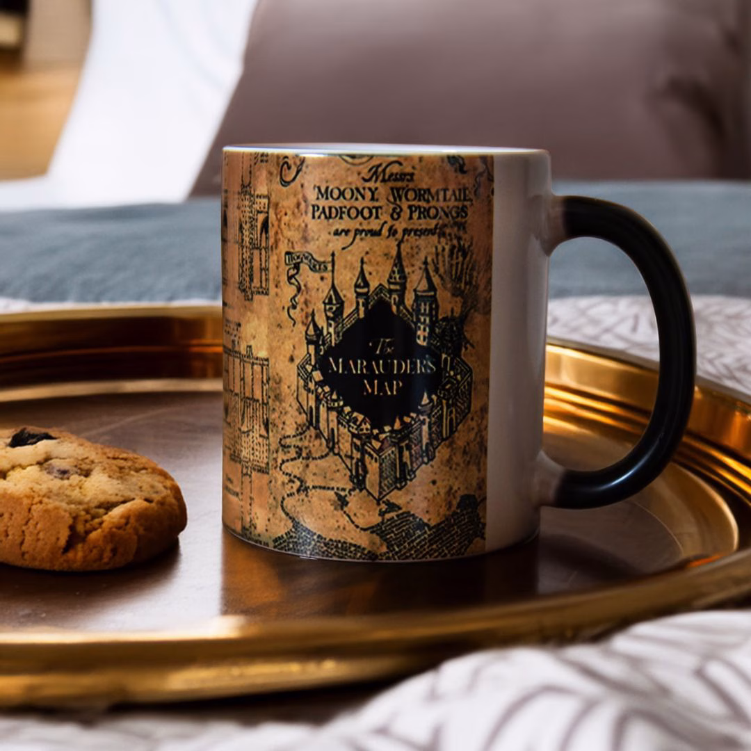 Kubek Harry Potter – Magiczny kubek termiczny „Mapa Huncwotów” to prawdziwy artefakt dla tych, doceniają, że magia kryje się w najdrobniejszych szczegółach codzienności. Na pierwszy rzut oka wydaje się zwykłym, czarnym naczyniem – ale gdy zalewasz go gorącą wodą, herbatą czy kawą, dzieje się prawdziwa magia. Na powierzchni kubka powoli ujawnia się legendarna Mapa Huncwotów, ten sam mistyczny dokument, który pomagał młodym czarodziejom w eksploracji tajemnych korytarzy i ukrytych przejść Hogwartu.