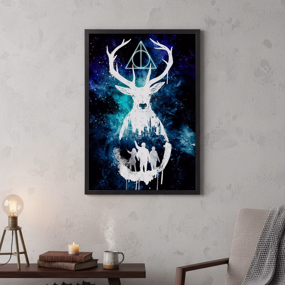 Plakat Patronus Harry Potter został wydrukowany na papierze premium o gramaturze 200. Grubość i struktura papieru sprawiają, że srebrzysty jeleń Patronusa wydaje się świecić własnym światłem, jakby rzeczywiście był utkany z pozytywnych wspomnień i szczęśliwych chwil. Każdy szczegół – od rozłożystego poroża po delikatne kontury postaci – został oddany z precyzją, która sprawia, że Patronus wygląda, jakby w każdej chwili miał ożyć i pobiec przez Twój pokój.